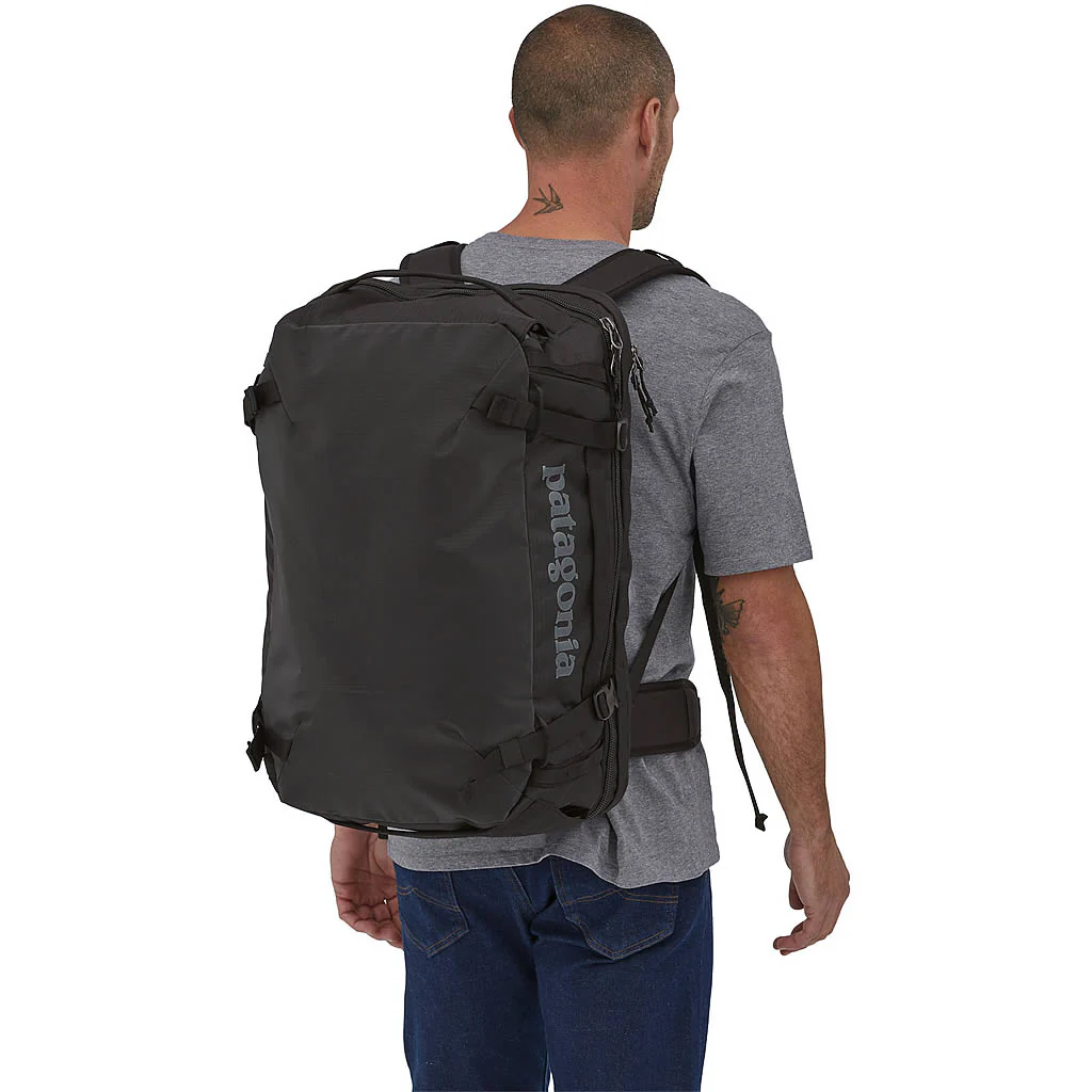 Patagonia's classic Black Hole® MLC® bag is a burly, soft-sided 45-liter suitcase with enough room for world travel and convertible backpack straps for comfy load carrying; made with 100% recycled body fabric, lining and webbing, plus a 100% recycled TPU-film laminate. Meets most carry-on requirements. Made in a Fair Trade Certified™ factory.