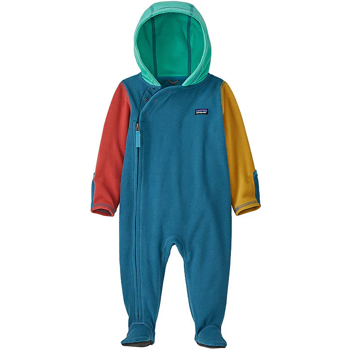 For head-to-toe warmth, this layerable one-piece bunting has a hood and feet made of lightweight 100% recycled microdenier polyester fleece. Fair Trade Certified™ sewn.
